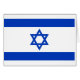 Drapeau d'Israël. Le drapeau d'Israël (Hébreu : ד ג ל ש י א ר Degel Yisrael, Arabe : Anglais d'eau d'Alam Isra'īl) a été adopté le 28 octobre 1948, cinq mois après la création du pays. Il représente une étoile bleue de David sur un arrière - plan blanc, entre deux bandes bleues horizontales. Les bandes bleues sont destinées à symboliser les bandes sur un tallit, le châle traditionnel de prière juive. La représentation d'une étoile de David sur le drapeau de l'Etat d'Israël est un symbole largement reconnu du judaïsme.