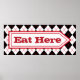 Dieses spaßige Eat Hier Schild ist ein großartiges Wanddekor für eine Küche, Esszimmer, Restaurant, Thema der 50er Jahre, Retro-Thema, etc.. Das Design stammt aus der Originalkunst.