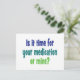 Ist es Zeit für Ihre Medikamente oder meine? Postkarte