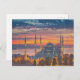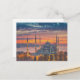 Eine bezaubernde Abbildung Istanbuls bei Sonnenuntergang mit einem lebhaften Orangenhimmel, der die berühmten Moscheen und Minarette der Stadt wunderschön Silhouette gibt. Die Szene erfasst den zeitlosen Charme von Istanbul, der sein reichhaltiges architektonisches Erbe mit dem ruhigen Licht der Dämmerung verbindet und einen perfekten Moment der Ruhe und Schönheit schafft.