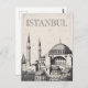 Mit dieser Vintagen Postkarte im Stil einer Skizze erwecken Sie den zeitlosen Charme Istanbuls. Mit handgezeichnet Illustrationen von ikonischen Sehenswürdigkeiten wie der Hagia Sophia, der Blauen Moschee und den geschäftigen Straßen des Grand Bazaar erinnert dieses Design an ein nostalgisches Gefühl der türkischen Kulturkreuze. Ein perfekter Sake für Kunstliebhaber und Reiseroller.