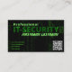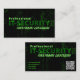 Die beliebte IT-Security Visitenkarte für berufliche Experten im Bereich Cyberkriminalität und Cyber-Sicherheit mit elegantem grünem Matrix-Hintergrund und dem Text "Berufliche IT-Sicherheit" für Fachleute der IT-Branche. Elegante Personalisierte Premium Business Card Vorlage für Sie und Ihre Dienste rund um die digitale Aura von Cyberkriminalität, Datenschutz, Internetsicherheit, Identitätsschutz und Betrugsanalyse und Firewall-Systemen. Zeigen Sie mit diesen Visitenkarten IT-Security Ihr Know-how im Bereich IT-Services, wenn Sie ein beruflicher IT-Spezialist für Cybersicherheit sind. Schauen Sie sich diese vollständig anpassbare Premium Business Card Vorlage an und personalisieren Sie Text, Stil, Farben, Größen nach Ihren Wünschen. Wenn Sie eine Designfrage haben oder dieses Design auf einem anderen Produkt sehen möchten, dann kontaktieren Sie mich bitte.