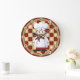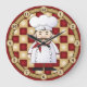 This old world clock has a chubby Italian Chef wearing a red scarf, white chef's hat, red pants against a pizza colored background and he's ready to cook and ready to decorate your kitchen.