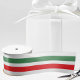 Satin ribbon with Italian flag green, white and red stripes – perfect for gift wrapping, crafts, parties, and celebrating Italian heritage.