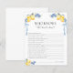 Bring laughter to your celebration with this Italian bridal shower game, featuring yellow lemons, blue bows, and soft watercolor accents. This Who Knows the Bride Best game is perfect for a That’s Amore theme, Mediterranean brunch, or summer lemon shower. A fun, interactive way to celebrate the bride while matching your Blue Bow Lemons collection — bright, playful, and full of Italian charm.