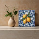 Italienische Keramik Fliesen Zitronenboden, mediterrane Küche Fliesen, sizilianische Majolika Fliesen mit Zitronen, traditionelle blau-weiße Keramik Muster, Amalfi Küchenintuition, dekorative Zitronenfliesen, rustikale italienische Backsplash-Mockup, Zitronenfrucht auf Majolika Fliesen Kunst, handgemalte Keramik mit Zitronen, mediterrane Zitrusküche Küche aästhetische Küche