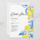 Elegante italienische Zitrone und blaue Blumen Brautdusche Einladung mit Skript-Schriftart. Ideal für Sommer-, Garten- oder Amalfiküste-Veranstaltungen. Editierbar und stilvoll!
