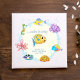 This adorable baby shower guest book features charming underwater creatures on the front, while the back showcases complementary blue watercolor stripes. The design incorporates a blend of serif and sans-serif typography for a modern and stylish look. To customize the invitation, simply click on "personalize this design" and enter your details. Zazzle will handle the rest. Additional matching items are also available.