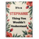 This fun and personalized notebook is made for anyone who proudly owns their name and their personality. Featuring the popular “It’s a Stephanie Thing You Wouldn’t Understand” phrase, this notebook makes a playful statement while staying practical for everyday use.