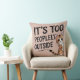 This soft throw pillow features a moody cat and the painfully relatable phrase “It’s too peopely outside.”