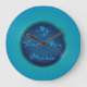 A sea green aqua record design with blue circular centre.This music clock also features text "Itz Time For Music". A minimalist clock suitable for anyone into musical instruments piano ect. A great gift for a music teacher.