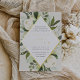 Unsere Hochzeitseinladung von Ivory Bloom umgibt Ihre Hochzeitstage-Details mit einem modernen, rautenförmigen geometrischen Rahmen aus bemalten Aquarellen, Eukalyptus-Blätter, botanischem Blattwerk und Blume aus Rose und Pony. Goldfolienbesatz und Akzent Buchstaben verleihen diesem schönen Design ein luxuriöses Finish.