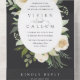 Unsere Hochzeitseinladung von Ivory Bloom umgibt Ihre Hochzeitstage-Details mit einem anmutigen ovalen Rahmen aus bemaltem Aquarell, Eukalyptus-Blätter, botanischem Blattwerk und Blume aus weißer Rose und Peony.