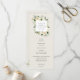 Unsere Hochzeitskollektion Ivory Bloom Aquarell mit zartem Aquarell, Eukalyptus-Blätter, grünem botanischem Blattwerk und Blume mit weißer und elfenbeiniger Tortur. Personalisieren Sie die Vorder- und Rückseite dieser Hochzeitsfeier mit Ihren Festdetails und Hochzeitsfeier.