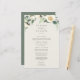 Notre collection de fleurs d'ivoire à mariage florale présente une verdure d'aquarelle délicatement peinte, des feuilles d'eucalyptus, un feuillage botanique vert et des fleurs de pivoines blanches et d'ivoire. Personnalisez ces menus élégants de réception de mariage avec vos choix de repas, avec vos noms en haut.