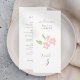 This lovely wedding menu and table number combo card features a contemporary set of purple fonts, a blush watercolor floral illustration, as well
