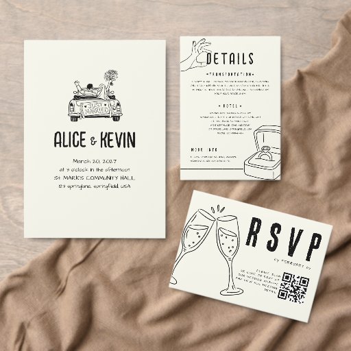 Ivory Hand Drawn Illustration Wedding Minimalist Save The Date