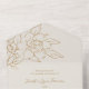 Elegante Line Art All In One Wedding Einladung mit einem einfachen Stift Skizze einer magnolischen Blume in einem Imitat Gold über einen neutralen Elfenbein / Creme Hintergrund. Diese schöne Blumeneinladung eignet sich hervorragend für eine Hochzeit im Frühling oder Sommer.