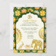 This customizable elegant Hindu wedding invitation features an ivory and emerald moghul arch adorned with peacock, lotus, marigold, om and mandala motifs. The rich details create a traditional yet vibrant design perfect for a festive wedding celebration.