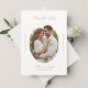 This creamy white and sand wedding save the date card features a contemporary set of fonts and couple photo in oval frame. This lovely design with typography elements, marries modern elegance with minimalist chic perfectly. The back comes in a light sand taupe color.