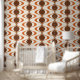 Ivory Tan Brown Burnt Orange Ogee Wave Pattern Tapete