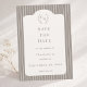 Announce your big day with this sophisticated pinstriped save the date. The design features a timeless taupe and ivory vertical stripe pattern accented by a classic laurel wreath monogram crest. This is an ideal choice for traditional couples seeking an elegant paper or digital save the date.