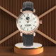 personalized watch, white dial, gold watch, minimalist design, elegant wristwatch, white leather strap, monogram gift, luxury accessory, custom initials, timeless fashion