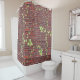 Urbaner, schicker Duschvorhang mit einer Grafik von grünen Efeu überzogenen Weinreben an einer roten Ziegelwand. Anpassen, um jeden gewollt Text hinzuzufügen. Fügt eine interessante Touch zu Ihrem Bad hinzu.