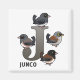 Vier verschiedene Juncos auf einem schieferfarbenen Buchstaben J. Sie können dieses Geschenk ganz nach Ihren Wünschen anpassen! Bewege das Design um, ändere die Hintergrundfarbe oder den Stil, füge deinen eigenen Text oder Bilder hinzu - mach es zu deinem eigenen!