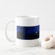 Mug monogrammé avec J + image abstraite bleue (lumière dans la nuit). Vous pouvez facilement modifier le monogramme (police, couleur, taille et position) en cliquant sur le bouton personnaliser. Parfait pour Fête des pères ou anniversaire.
