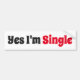 Kündigen Sie an, dass Ihr Verhältnis-Status mit der Phrase "ja ich sind Single" ist. Text ist auf einem weißen Hintergrund. Der Wort-Single erscheint in den roten Buchstaben, während anderer Text schwarz ist.