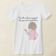 Dieses T-Shirt hat mein niedliches zeichn einer Dame mit wirklich lockigen Haaren. Sie trägt ein rosa Oberteil, das wie ein Kosmetikersmock aussieht.