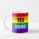 Der Text "Yes homo" (ein Stück auf no homo), vor dem Hintergrund eines Regenbogens:)