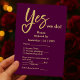 Ja Wir machen Pflaumengolden Hochzeitskarte Dieses elegante Pflaume- und Goldhochzeitdesign enthält den Satz "Yes we do!" mit dem Wort "Yes", das in einem romantischen Goldskript geschrieben ist. Das durchdringende Y enthält clever eine Herzform, die Liebe und Einheit symbolisiert. Das minimale schicke Layout verbindet kühne moderne Typografie mit zeitlosen Goldakzenten und schafft einen luxuriösen Look, der sich perfekt für feierliche Veranstaltungen, Pflaumenfeiern oder Abend-Hochzeiten eignet. Die Namen werden in anmutiger Kalligraphie angezeigt, was dieser edlen Schreibwarenhandlung eine Touch persönlichen Charmes verleiht. Dieses Design ist Teil einer individuell anpassbaren Hochzeitskollektion und wurde mithilfe von KI sorgfältig erstellt, um die Kreativität zu unterstützen. Ich verdiene eine kleine Provision durch Einkäufe, die über soziale Medien-Verweislinks getätigt werden.