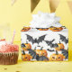 Dieses Halloween-Muster zeigt lächelnde Kürbis, fliegende Hexen auf Broomsticks, schwarze Katzen, Fledermäuse und Vollmonde. Vor einem hellen Hintergrund schaffen diese festlichen Elemente ein spielerisches und saisonales Design. Ideal für unheimliches Kunsthandwerk oder Dekoration!