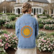 Calendula (orange Blume mit gelber Mitte) sind in einem Kreis um einen orangen 3-D Kreis repliziert. Es sieht so aus, als ob die Blüten Hände (Blätter) halten und um das Zentralbild einer Sonne tanzen.