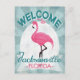 Jacksonville Florida rosa Flamingo. Im Stil der Vintage-Reiseplakate steht "Welcome To Jacksonville, Florida" in rosa, weiß und mint grün türkis.