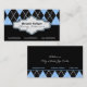 Jacquard blanc noir cartes de visite tendance, avec un bleu ciel et blanc Jacquard motif. La partie inférieure est de couleur noire solide. Une bande noire et une bande bleue séparent les deux parties. Votre entreprise/nom est tapé sur un élégant étiquette damassé aux contours noir et rose. Design moderne et agréable, avec une touche rétro, qui peut être utilisé pour de nombreux domaines d'affaires tels que les intérieurs, coiffeur, mode et plus encore.
