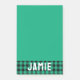 Tief grünes klebriges Notizblock personalisiert mit Ihrem Namen in großen weißen fetten Buchstaben am unteren Ende des Notizblocks vor einem Hintergrund von Jade grünen Büffel Karo. Personalisiertes Notizblock mit tiefgrünem Buffalo-Karo, der Name in großen, fetten Buchstaben und ein kräftiger Schatten coolen Grüns, der Ihre Notizen und Erinnerungen schwer zu verpassen!