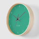 Einfache, stilvolle individuelle Name-Wanduhr in modernem minimalistischem Stil in Jadegrün. Dies kann leicht mit dem Namen oder Monogramm eines geliebten für ein perfektes Geschenk personalisiert werden.