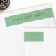 Einfaches, stilvolles J'adore Weihnachten" Zitat-Kunstverpackung rund um das Retourenschild mit moderner, minimalistischer Typografie in Waldgrün auf einem schluchgrünen Hintergrund in einem trendigen Feststil. Das Zitat übersetzt in "I Liebe Weihnachten" auf Französisch. Der Gruß, Name und Adresse können für das perfekte Mailing-Accessoire leicht personalisiert werden, um sich mit unseren passenden Urlaubskarten für die Weihnachtszeit zu paaren!