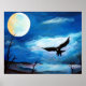 Wenn du Vögel liebst, ist dieses Hawk-Poster das Richtige für dich. Die Jagd auf Hawk, der sich über einige scheußliche Berge kreist, während der Vollmond den Nachthimmel erhellt.