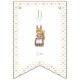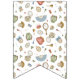 Diese Bunding Fahnen sind Teil unserer Storybook Shower Kollektion. Das Design erinnert an ein altes Lieblingsgeschichten-Buch, das Abbildungen charakterähnlicher Tiere und Objekte enthält. Verwenden Sie es, um einen Geschenktisch zu dekorieren, oder um einen Foto-Bereich Set.