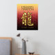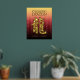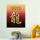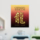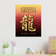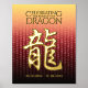 Feiern Sie das neue Jahr in China mit diesem auffallenden Goldfolienposter, das die chinesische Schriftform für den Drachen, das fünfte Zeichen/Tier im östlichen Zodiakum und traditionelle feierliche chinesische Grüße, pseudoprägt auf einem goldrot-roten Hintergrund. Design © W.H. Sim. Weitere Informationen unter zazzle.com/expressionsoccasions