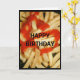 Ein Nahaufnahmen von goldenen Pommes frites, mit Ketschup bedeckt, ist Gegenstand meiner Geburtstagskarte "Happy Birthday - The Years Never scheinst To Ketchup To You!".