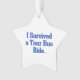 I Survived a Tour Bus Ride ornement en céramique étoile est un souvenir ou souvenir pour les touristes, les chauffeurs et les guides touristiques, et une belle trouvaille pour les collectionneurs de décorations. I Survived a Tour Bus Ride est un concept original Steamy Raimon et l'art de la calligraphie. *suggestion : plusieurs de ces ornements et de la ligne de pêche (ou corde) font pour une excellente chaudière à vent; pour Noël ou à tout moment