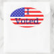 L'auto-collant de forme ovale populaire ou le sceau avec le drapeau de l'Amérique en rouge, blanc et bleu étoiles et rayures avec le texte "J'ai voté" en caractères bleus correspondants en gras. Le texte peut facilement être modifié en mots personnalisés. Idéal pour les élections ou autres événements patriotiques spéciaux tout au long de l'année ! Montrez votre fierté et n'oubliez pas de voter lors de la grande élection présidentielle de novembre prochain et pour les prochaines élections.