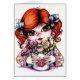 Grande fille d'oeil avec une tasse d'amusement de robot