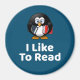 Mignons et drôles "I Like To Read" manchot tenant ses livres.