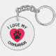 Un mignon empreinte de patte de chien noir dans un coeur rouge. Le texte et les images sont personnalisables : vous pouvez modifier le texte, ajouter n'importe quelle race que vous aimez. Conception originale avec texte courbe pour amoureux de les chiens.